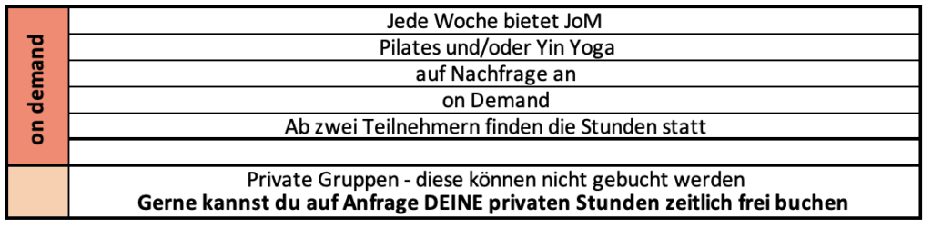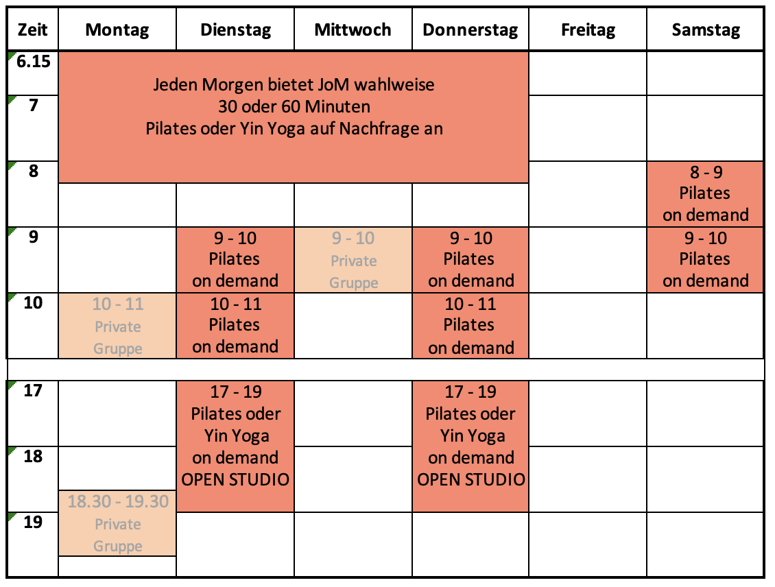 Seit den Sommer Ferien bietet Joy of Movement die Pilates Stunden auf Nachfrage an.